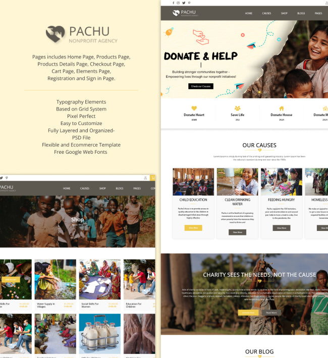 Introducing Pachu - a comprehensive PSD and Figma template designed specifically for charities, NGOs, and non-profit organizations. Pachu offers a range of pre-designed layouts and components tailored to the unique needs of philanthropic endeavors. With its clean and modern design, Pachu effectively communicates the mission and values of your organization while providing an intuitive user experience for visitors. Whether you're seeking donations, promoting events, or sharing stories of impact, Pachu provides all the tools you need to create a compelling online presence. With easy customization options, you can adapt Pachu to suit your organization's branding and messaging, ensuring a cohesive and professional appearance across all platforms. Empower your cause with Pachu and make a difference in the world today